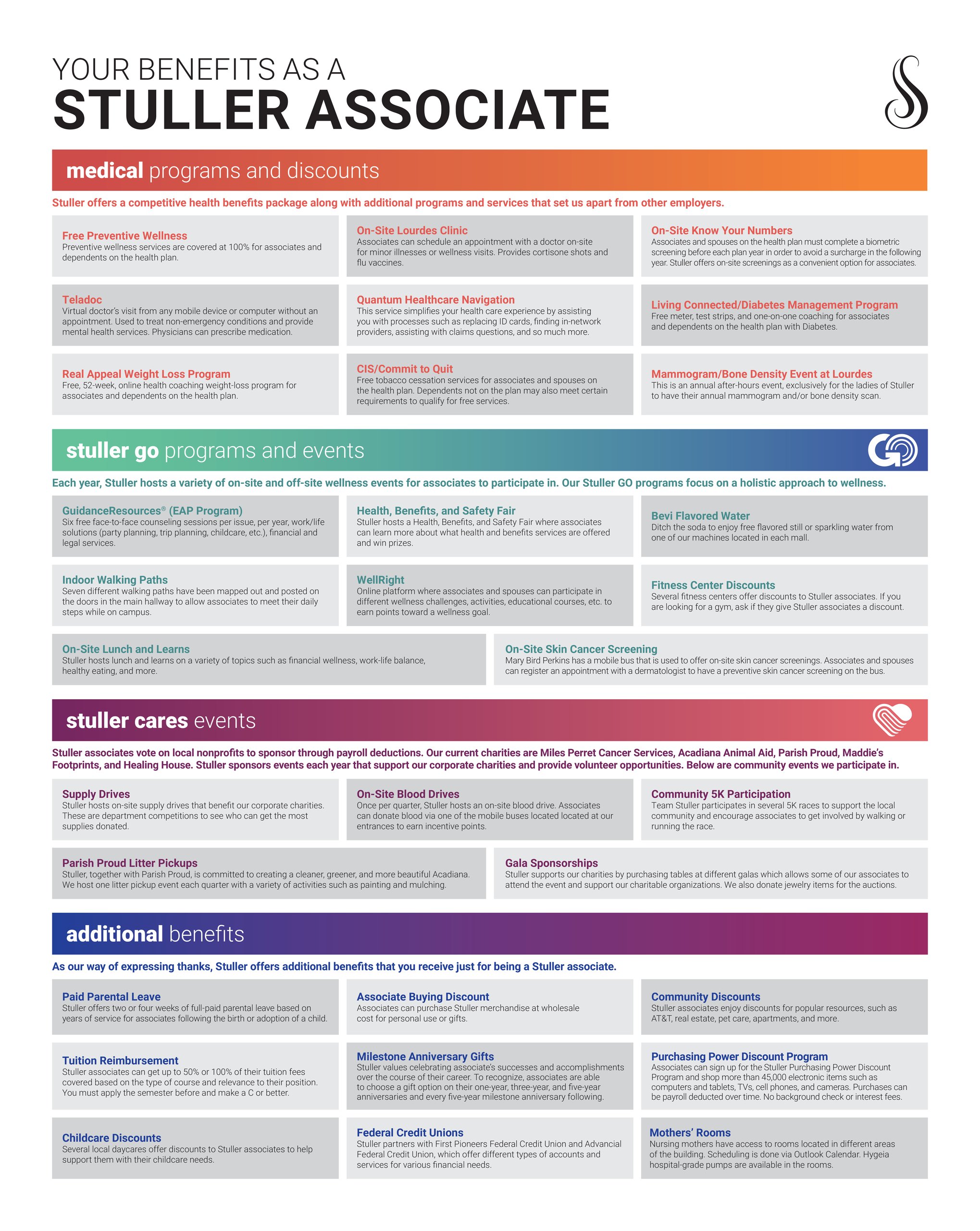 We are committed to our employees’ comprehensive health and happiness. Our award-winning wellness initiatives and benefits help Stuller to stand out as one of the top employers in Louisiana. Learn more about our benefits by clicking here.